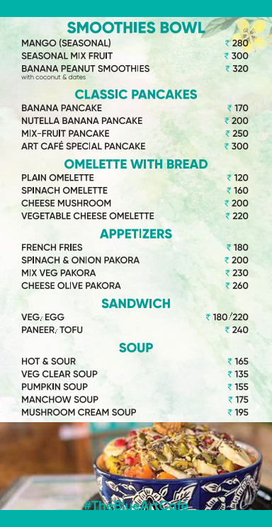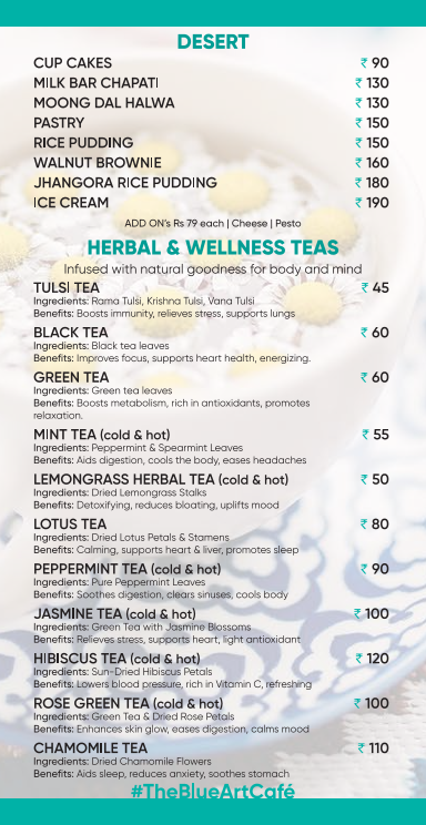 The Blue Art Cafe Menu